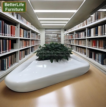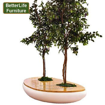 A-Banco de área de descanso público con maceta de fibra de vidrio para plantas artificiales