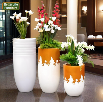 A-Maceta de fibra de vidrio con forma de cilindro de peso ligero Maceta de FRP alto para interiores y exteriores