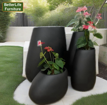 A-Nordic Simple Style Home Office Suelo Maceta de hormigón Maceta Redonda Negro Blanco Fibra de vidrio Maceta suculenta