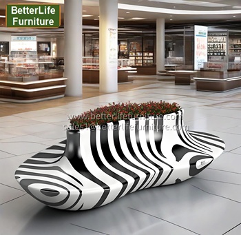 A-ゼブラベンチフラワーポット装飾マルチカラーFRPさまざまなスタイルの商業用家具m型ベンチチェア