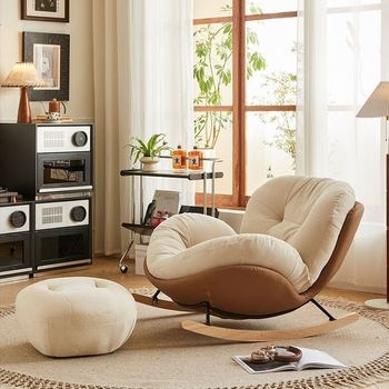 เก้าอี้โยกเดี่ยวแบบทันสมัยสำหรับคนขี้เกียจโซฟาปรับเอนได้หรูหราห้องนั่งเล่นบ้านพักผ่อนพักผ่อนระเบียงผ้าหอยทากผ้าฝ้าย